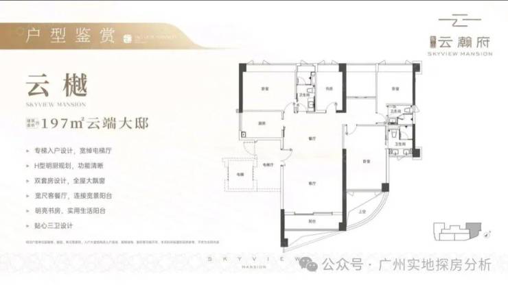 197㎡南向5房2厅3卫:四面采光,东单边户,三套房双阳台舒适大平层。