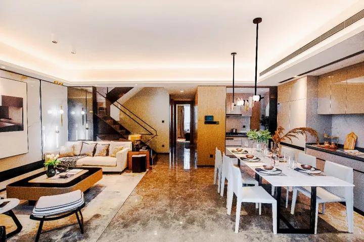 一层是近70㎡的私家花园,及会客厅及1间南向卧房,二层是餐客厅厨房及1间卧室,三层是休息区共有3间卧室。