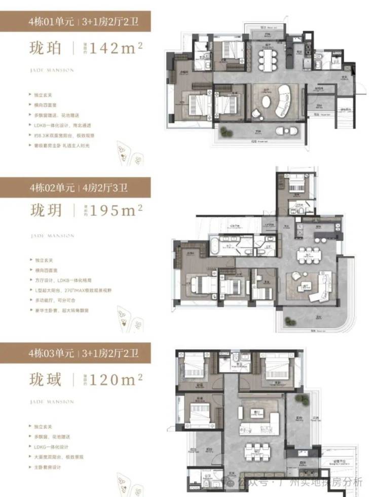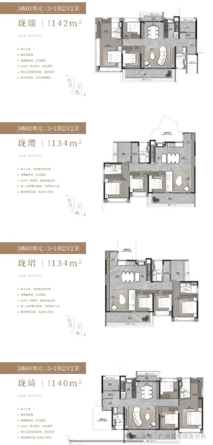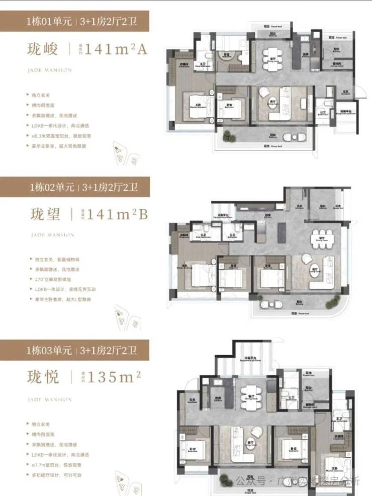 4、户型设计合理:户型设计顺应高维居所需要的生活场景迭代,主推约 135-143 平 3+1 房,具有独立入户玄关、大面宽、南向观景阳台等特点,且使用率约 100%,全屋采用了多处花池、飘窗等设计,将使用率拉满,同时多拓展空间。