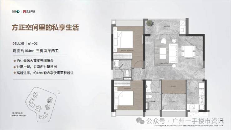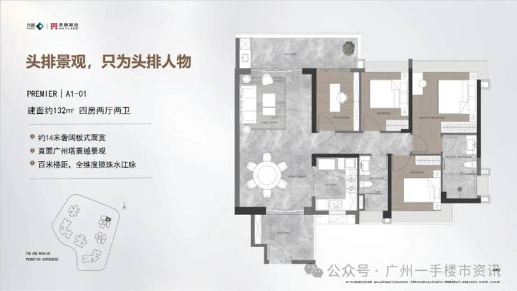 此外,项目距离广州塔大约 800 米,部分住宅可欣赏到稀缺的江景资源,部分高层户型还能对望广州塔,俯瞰珠江两岸的繁华景象。