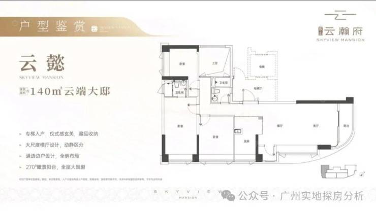 140㎡南向4房2厅2卫:六开间超南,超17米南向面宽,四面采光单边户。
