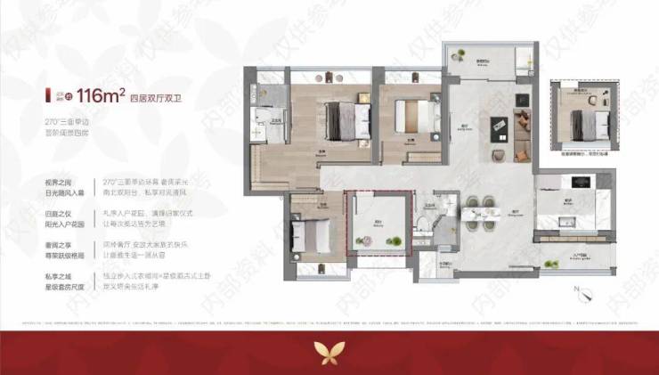 🏆建面约116㎡-270°单边王 四房双厅双卫