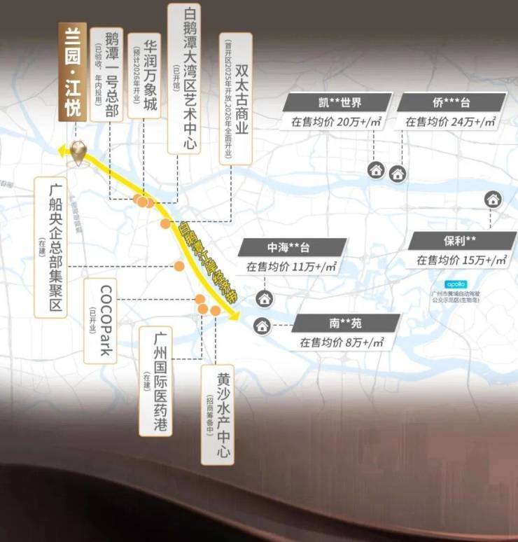 项目傲居白鹅潭CBD,便捷交通路网,500米地铁站。白鹅潭定位“广州西翼CBD”,对标纽约、芝加哥、东京等世界级中央商务区,以200万平方米体量晋升广州5大世界级商圈之首。