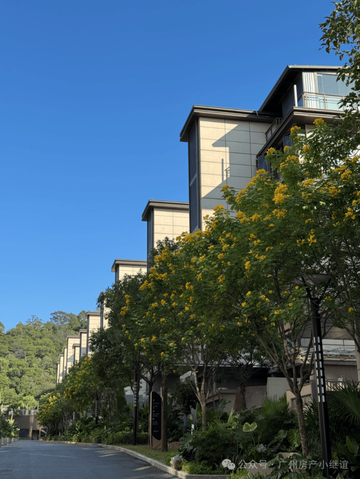 推窗,不再是眺望一片固定的风景,而是步入一个流动的自然剧场:初冬的黄花风铃木沿湖绚烂,紫花风铃木于叠翠园中绽放,杉树倒入私家湖面,山风微微穿堂而过,冬日的暖阳洒满院落。