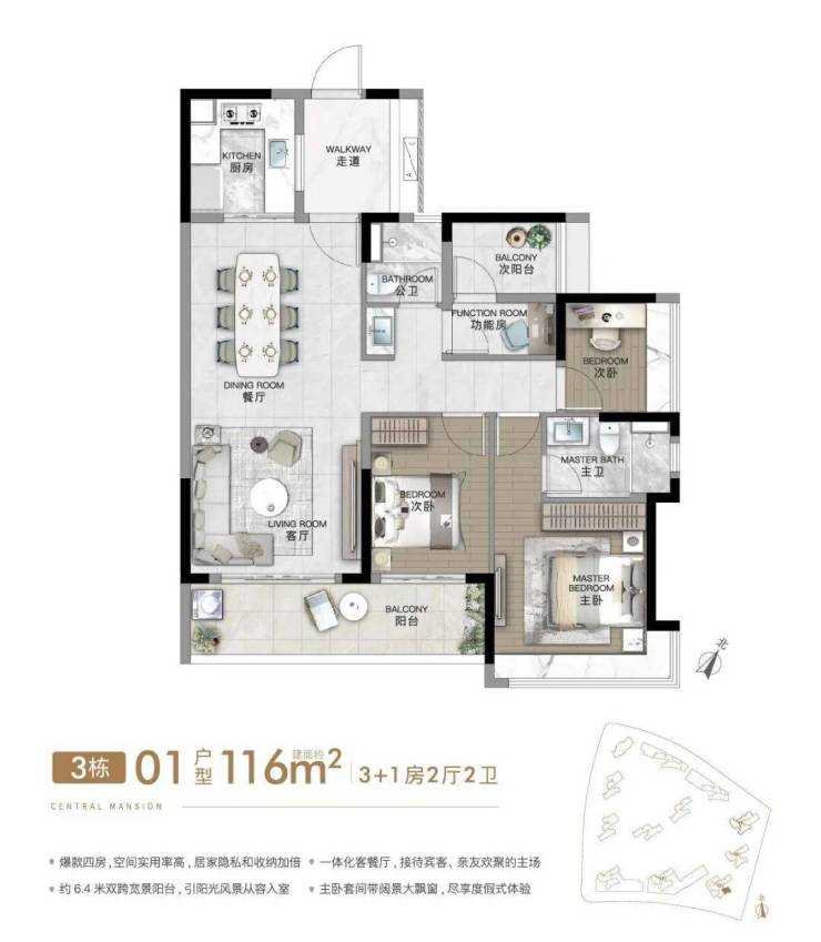☀️全幕宽景阳台可规划成茶室、或者清晨的小小瑜伽区,在美景视野相伴下,每一次呼吸都是享受。真的是名副其实的 「超能空间大师」 ,一步到位的理想选择,每一处细节都彰显着尊贵与舒适。在这里,每一天醒来都是美好的开始。