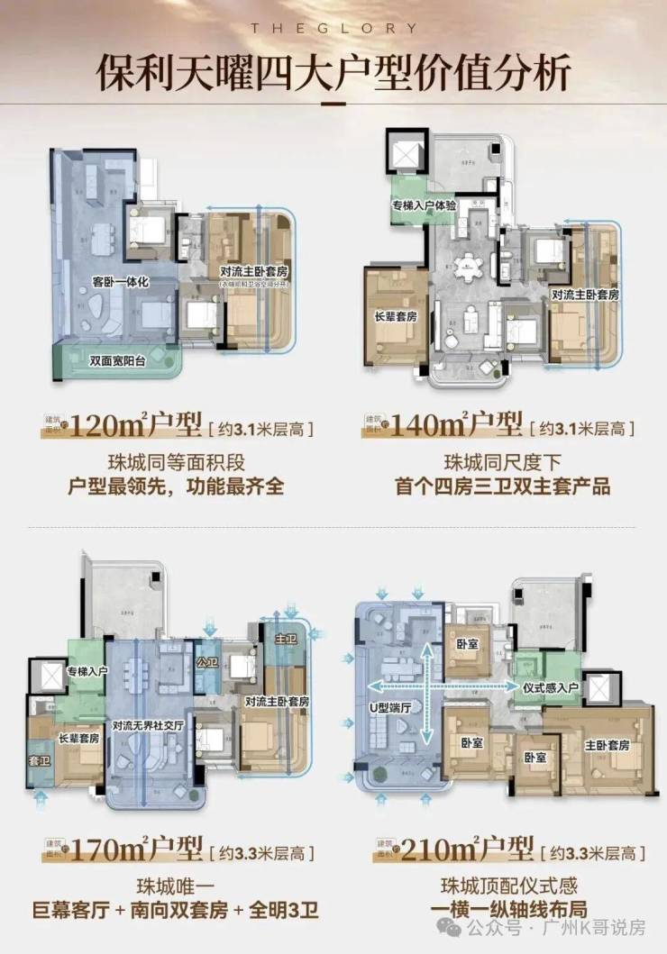 设计好处是既保证了通风、采光,还保障了侧向江景和珠城景观的最大化。