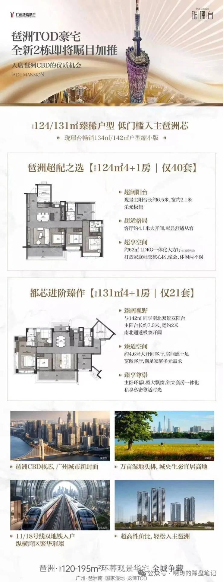 广州地铁地产·珑璟台推出最后一栋2#,主打建面约123㎡、131㎡4+1房。