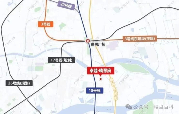 地铁——距离最近的是广州地铁3/18/22号交汇的番禺广场站,畅通广州全城,步行地铁站需要一点时间,借助公交和电机会方便点;周边还有17号线的桥南站规划中;