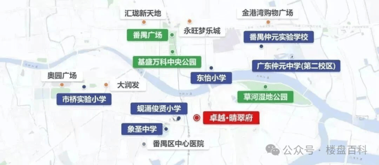 教育——周边有诺宝幼儿园(约800米)/市桥实验小学蚬涌俊贤学校/桥城中学集团象圣学校/广东番禺中学等;