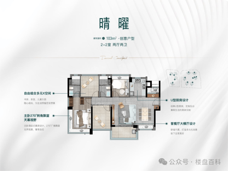 开发商卓越集团是城市精英人居先行者,中国商业地产综合实力TOP7,城市更新十强企业TOP2,布局全40+城,打造多个标杆项目;晴翠系打造专注城市精英人居,以“近场力”为核心理念,定制社交、家庭、事业、自我四大维度生活场景。