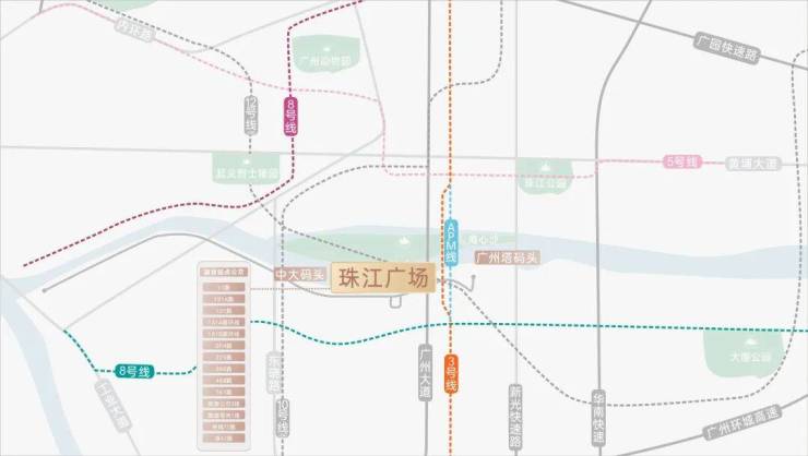 3+条主干道:广州大道、新光快速、华南快速等,快速抵达珠江新城。