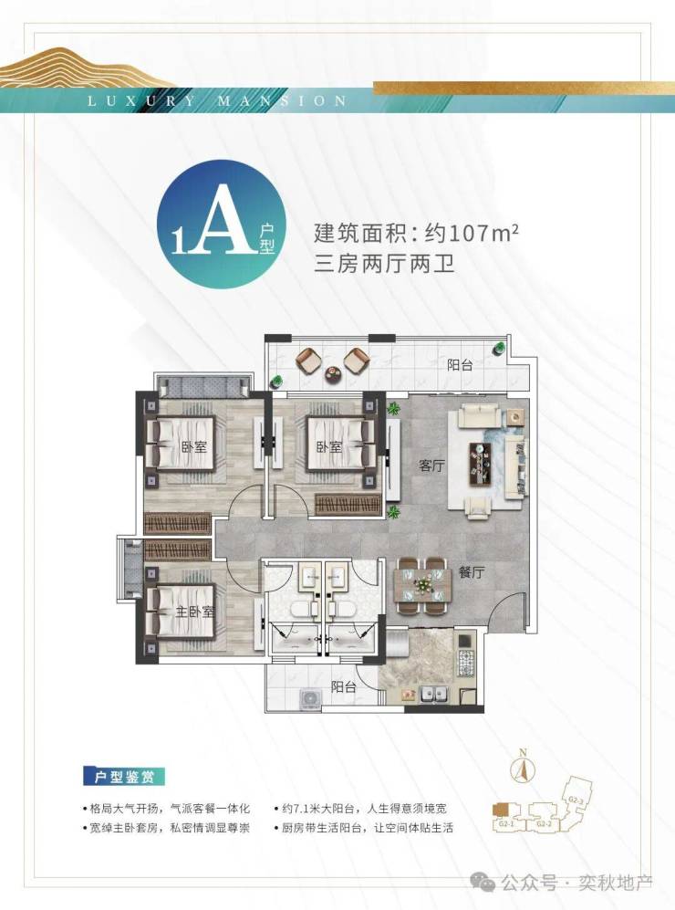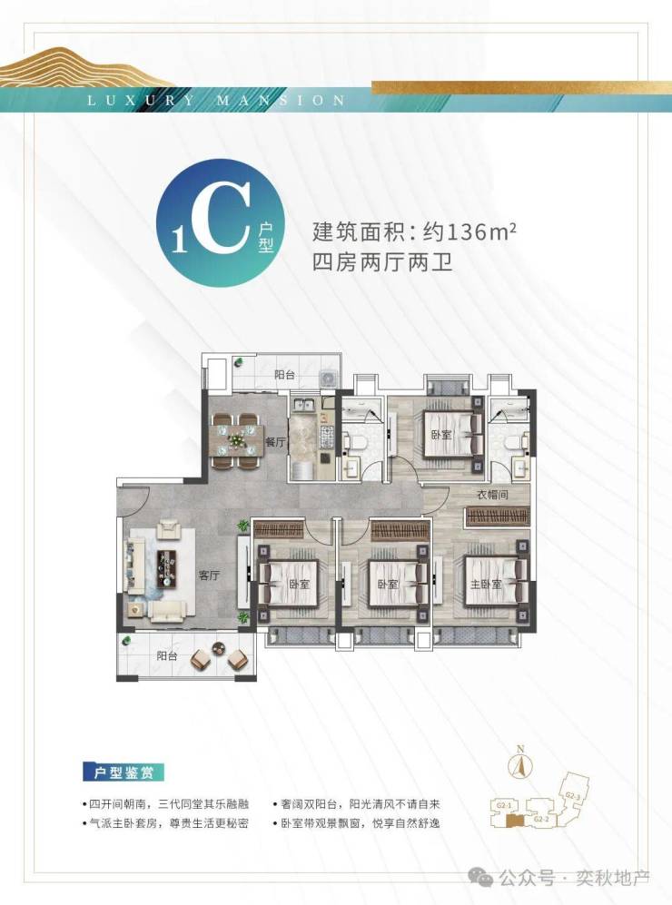 ⑤新洋房:建面80-136㎡,3米层高,南北双向大阳台设计,私享空中泳池。