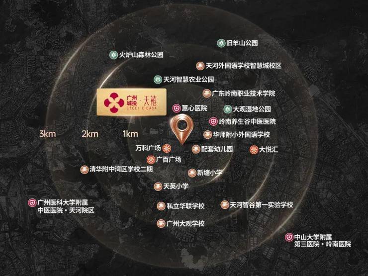 城投·天禧周边医疗资源丰富,广州医科大学附属中医院·天河院区、中山大学附属第三医院·岭南医院等三甲医院均在8公里范围内,可提供优质医疗保障。此外,项目周边还设有蕙心医院(380米)、岭南养生谷中医医院(1.3公里),为业主提供更便捷的日常医疗服务。