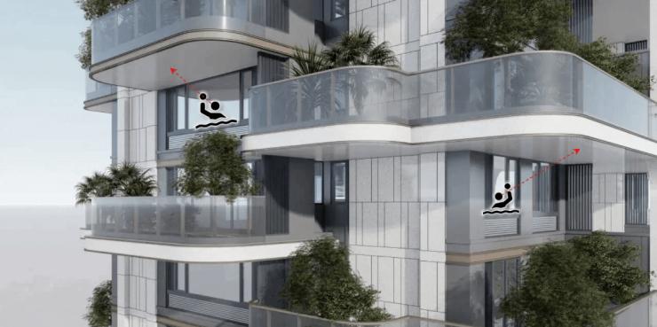 同时该户型对于下层的住户来说,在空中花园的活动都可能被一览无余。由于空中花园不能进行封闭,所以下层业主收楼后只能在空中花园上面加装一面挡板,来解决“私密性差”的问题。