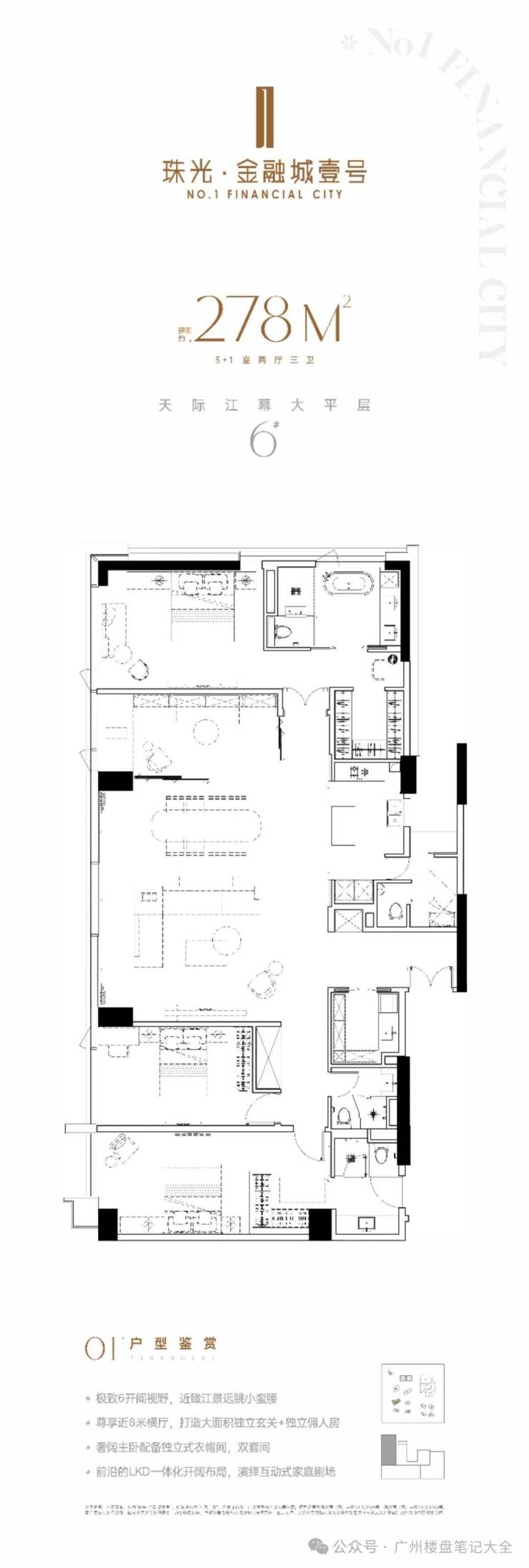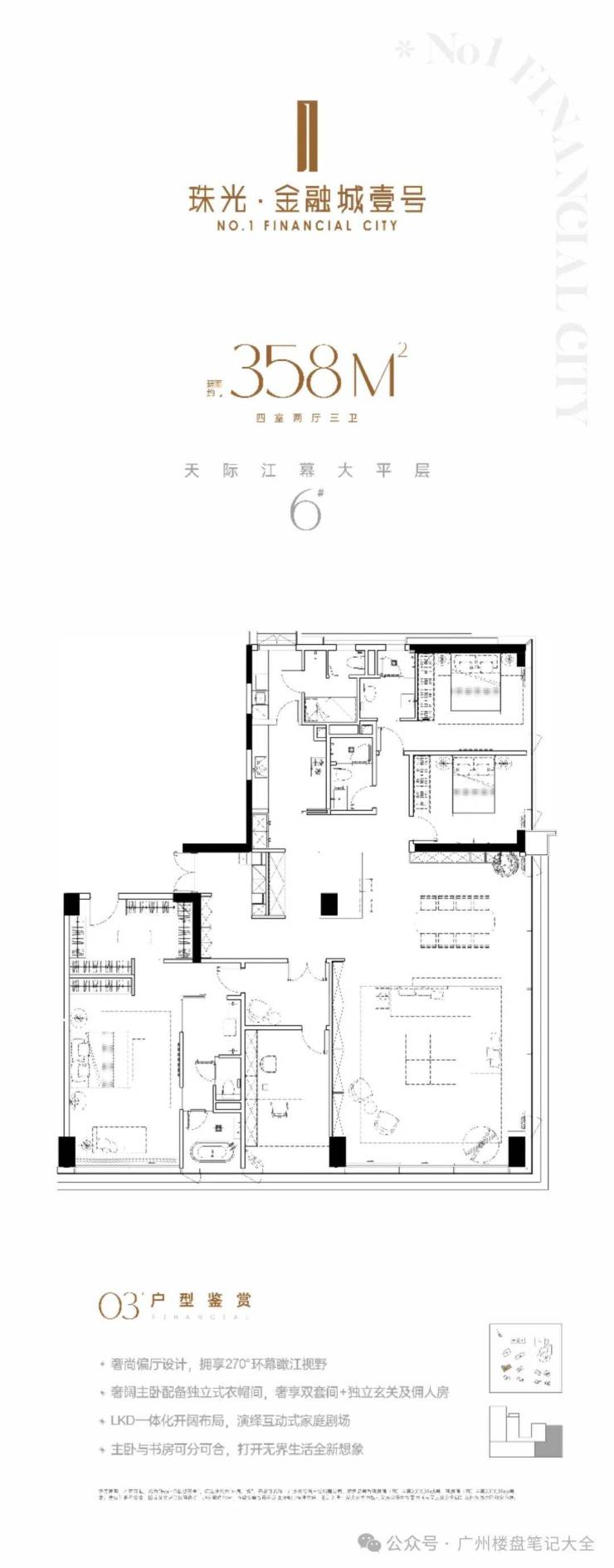 【二期大平层产品】6栋天幕大平层(31层-42层)280-358㎡,270°一线揽江视界,俯瞰珠金琶三大地标[强]旗舰级星级客厅,塔尖人物第二会客厅
