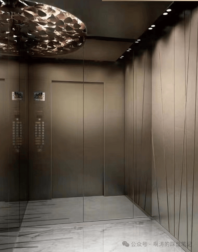 日立品牌高速电梯,每秒约 2.5m,科技与艺术完美融合,营造稳健快速且舒适安全的归家仪式感。