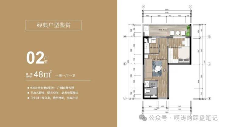 02户型 建面约48㎡ 一房一厅一卫