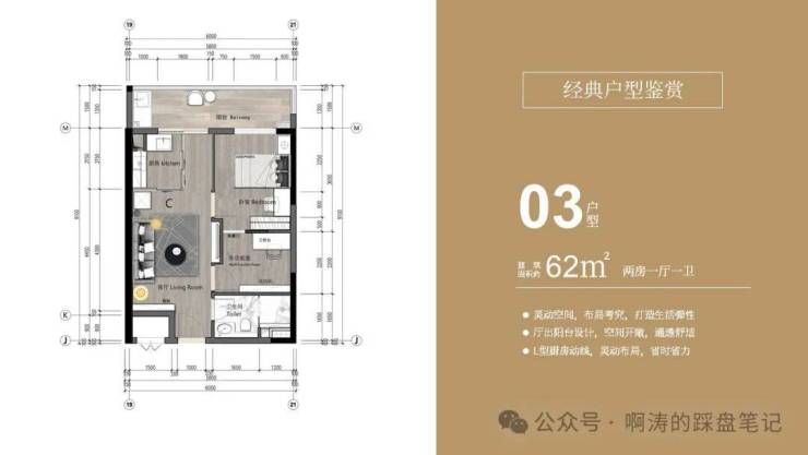 03户型 建面约62㎡ 两房一厅一卫