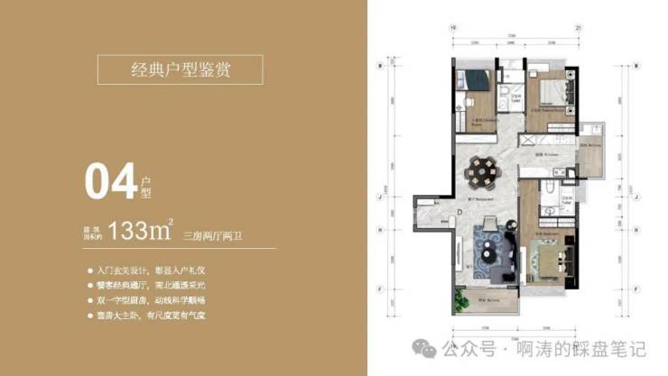 04户型 建面约133㎡ 三房两厅两卫