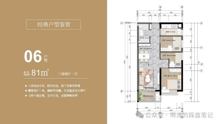 06户型 建面约81㎡ 三房两厅一卫