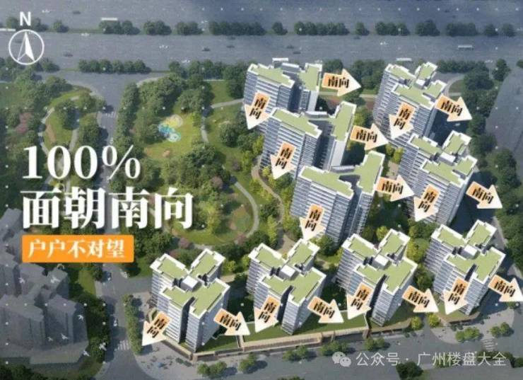 项目三期采用了全南向围合式布局,所以楼栋转体40°,全部户型朝南,只有西南和东南向。