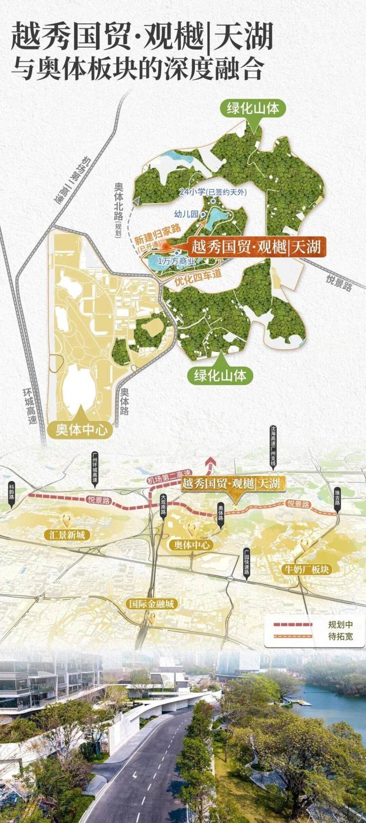 观樾天湖所在的天河世界大观片区,背靠极具发展潜力的 CTD 奥体板块,