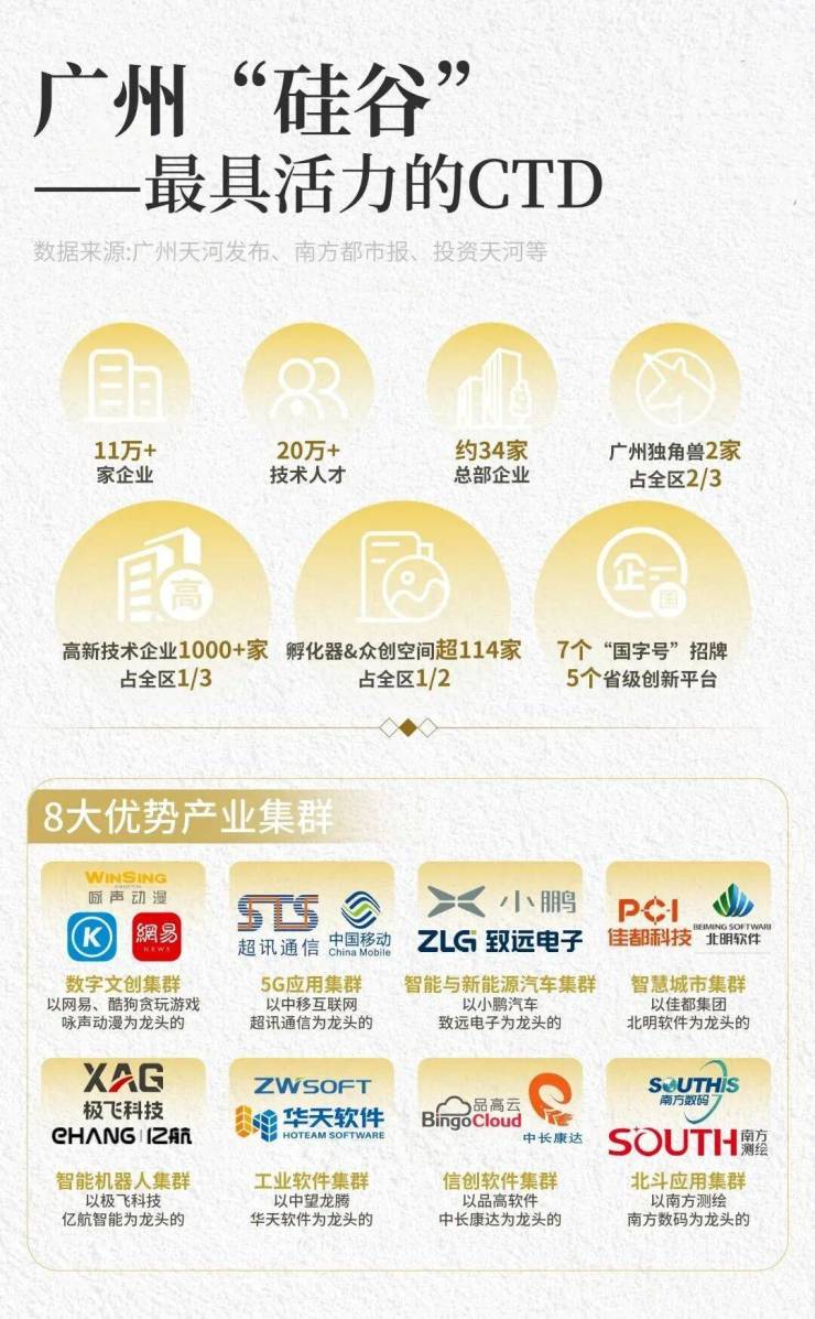 项目所在的位置,是天河极具发展潜力的第三中轴核心CTD——天河智谷奥体,背靠超20万的技术人才与八大优势产业,年产值预计达1100亿元,已是广州第四大经济增长极。