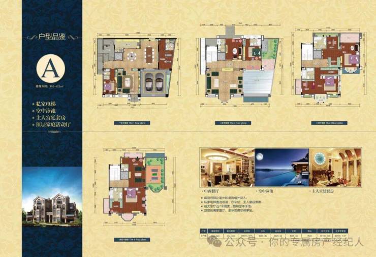 【产品】485-641㎡广州经典户型别墅,下沉式前庭后院,大开间,带电梯,赠送双车位,部分户型带私家泳池,室内使用率高达 123%。