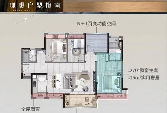 采用LDK布局,连通270°朗阔阳台,南北对流主卧套房,L型瞰景飘窗