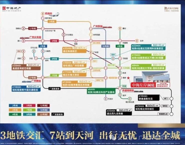 中海左岸澜庭的核心配套设施,是其作为“枢纽滨江活力大城”的坚实基石。项目规划有大规模滨江风情园林、可俯瞰江景的泛会所空间、全龄儿童成长系统、滨江健康跑道及自持大型商业中心,营造出开放、活力、亲水的社区氛围。其最大亮点在于对 “一线珠江后航道江景资源”的充分占有与 “广州南站TOD枢纽”的高效连接,部分楼栋享有无遮挡的壮阔江景,同时通过立体交通网络(地铁2号线、7号线、22号线及高铁)迅捷通达大湾区。项目自身配建优质学校,并汇聚商业、文化等全维配套,真正实现“出则瞬达世界,入则静享江湾”的极致生活体验。