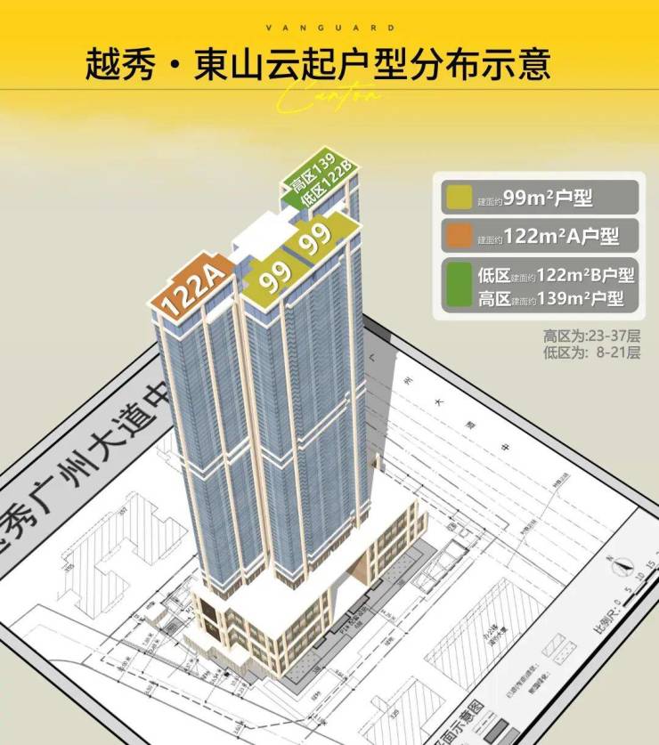 整个越秀东山云起项目住宅总高37层,其中1-6层为业主会所配套设施,7层和22层为架空层,从8楼开始起才是可售的住宅单位,由于项目周边基本都是楼龄比较旧的二手房,所以这116套新规住宅注定会很抢手。
