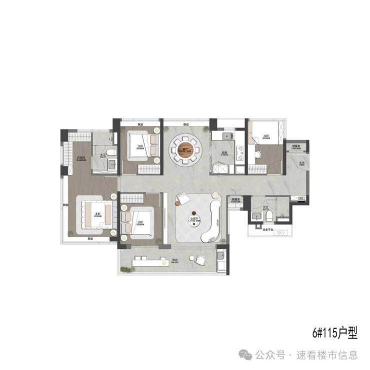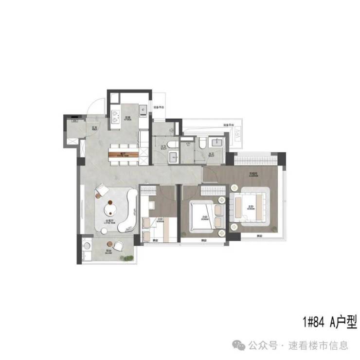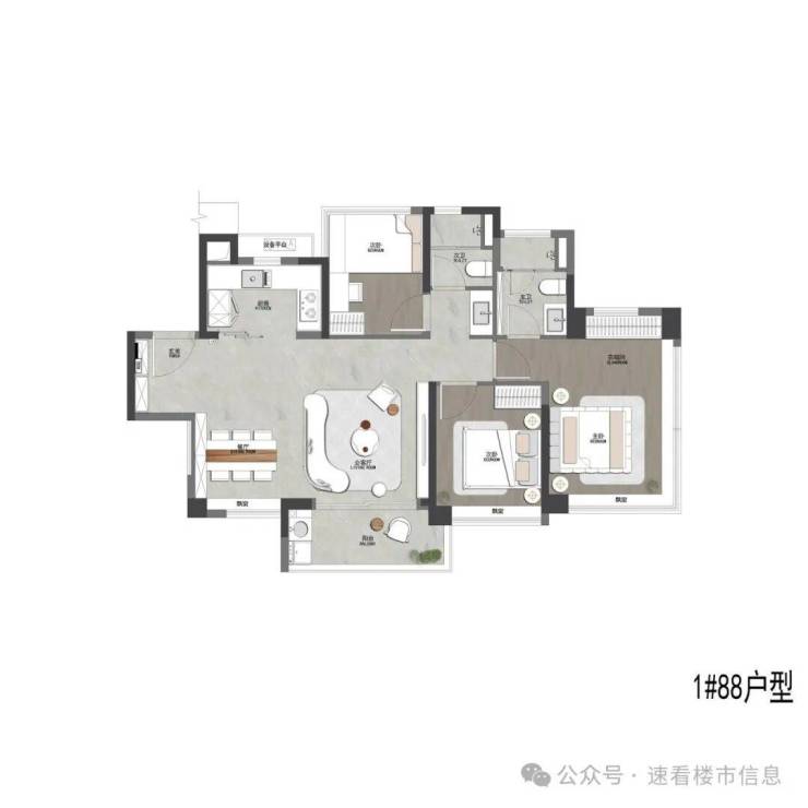项目的主力户型为80+㎡、90+㎡、100+㎡、110+㎡和130+㎡的三至四房产品。四房户型占据了项目的80%左右,满足不同家庭的需求,且每个户型的使用率可达115%,相当高效合理。