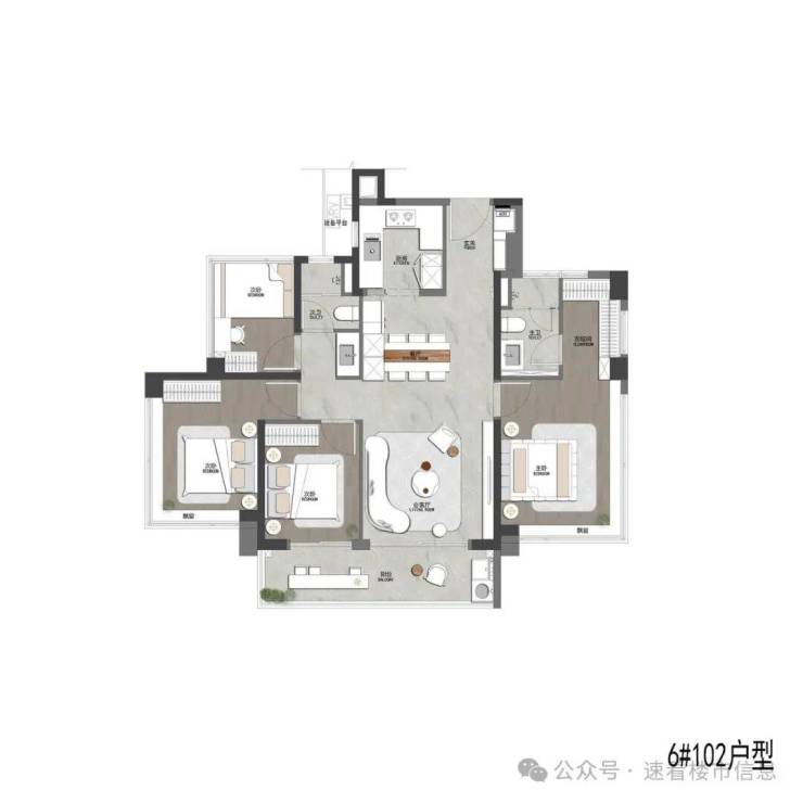 总规划:5栋楼,1#2T5、2-6#2T4栋楼,每栋楼层高32层。