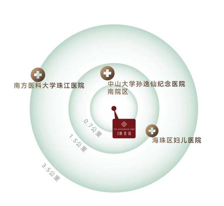 约750米中山大学孙逸仙纪念医院(三甲)约1.5公里海珠区妇儿医院约3.5公里南方医科大学珠江医院、广州医科大学附属第二医院