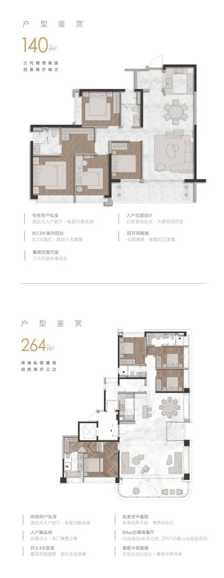 在售户型:住宅:140-264㎡ 公寓:50-148㎡