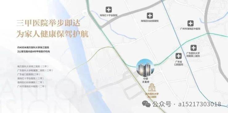 500米步行南方医科大学珠江医院,广州医科大学附属第二医院、广州市红十字会医院等多家三甲医院保驾护航。