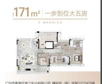 171㎡五房两厅两卫为 8 层小高层,采用专梯入户设计,私密性较好,部分房源能直接看到长隆景观。厨房是 U 型布局,预留了双开门冰箱位置,客餐厨一体化设计让空间利用率更高,适合三代同堂的家庭。