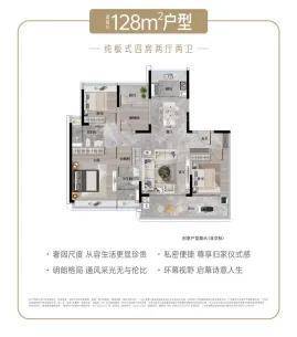 128㎡三房两厅两卫是刚需友好型户型,总价约 614 万元起,三开间朝南,客厅连接阳台,采光充足,适合刚步入改善阶段的年轻家庭。