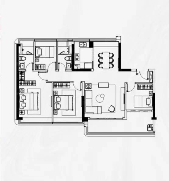 205㎡四房两厅三卫是环幕景观户型,配备近 9 米宽的巨幕双阳台,双主卧套房设计,长辈房带独立卫浴,避免日常起居干扰。