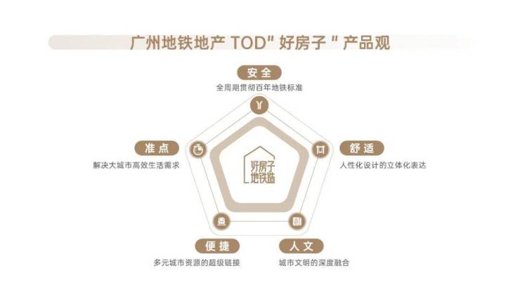 作为更懂广州的实力国企,广州地铁地产深刻理解人流、资源与城市活力在轨道节点上的聚集效应。坚持以百年地铁标准造好房,用超30年的开发历程总结TOD“好房子”产品观——黄金五律“安全、准点、舒适、便捷、人文”,综合开发三大产品系,回应广州人们的美好生活期待。