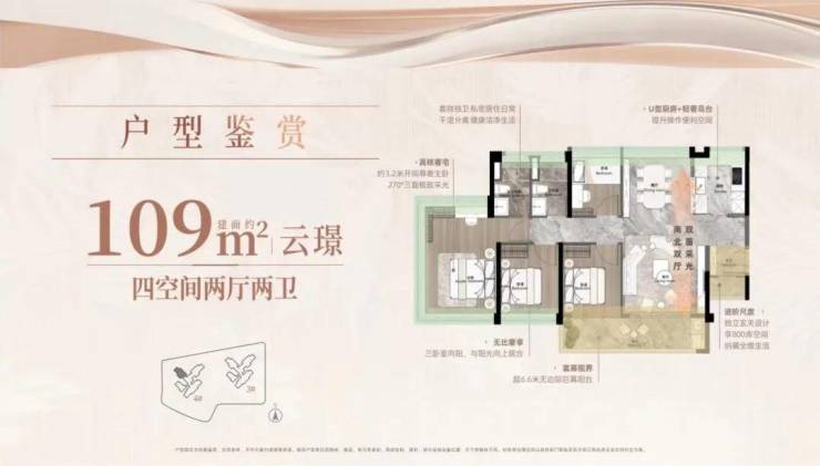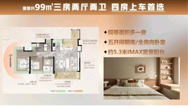 户型特点:采用新规户型设计,赠送率较高,如83平方米户型为南向三房两卫,四开间朝南;99平方米户型有IMAX宽景阳台和主卧三面环幕视野;109平方米户型南北对流,玄关处设有800库空间;126平方米户型为五房两卫,5.5开间朝南,客餐厅尺度阔绰。