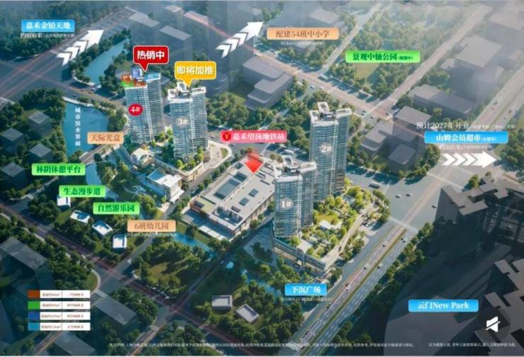 3、商业配套成熟:对面是云门new park商业综合体,步行100米即可到达;西北侧300米有在建的山姆会员超市(预计2026年开业);800米内有嘉禾金铂天地等大型商超,生活购物、休闲娱乐十分便捷。