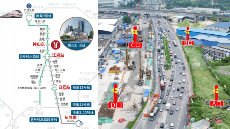 •地铁8号线北延段神山东站(在建中);1个站白云、5个站广州北、12个站到越秀区.