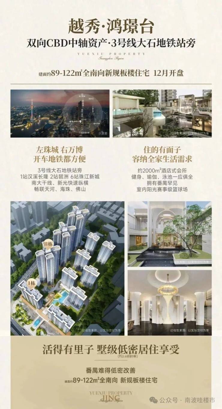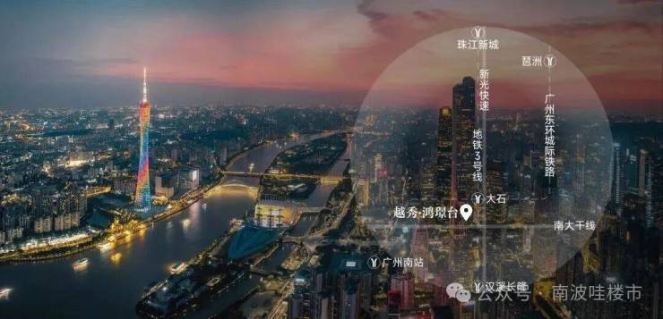【越秀·鸿璟台】占位第三中轴在番禺的首个节点,精准串联天河、海珠、番禺三大核心区,精准承接广州两大核芯 CBD——万博与珠江新城商圈的资源辐射。相较于中轴其他高密高溢价板块,这里既拥有高效的通勤效率,又具备舒适的居住环境,是难得的宜居生活中心。项目位于番禺·南大干线北侧、地铁 3 号线地铁站旁,如此优越的地理位置,使其成为城市繁华与舒适生活的完美结合点。