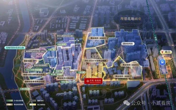 芳和荟购物广场、荔胜广百等成熟商圈步行可达。700米内理想花地商业部分开业,2公里聚龙湾太古里、万象城即将落地。项目自带约40万㎡滨水商业综合体,下楼即享便利生活。