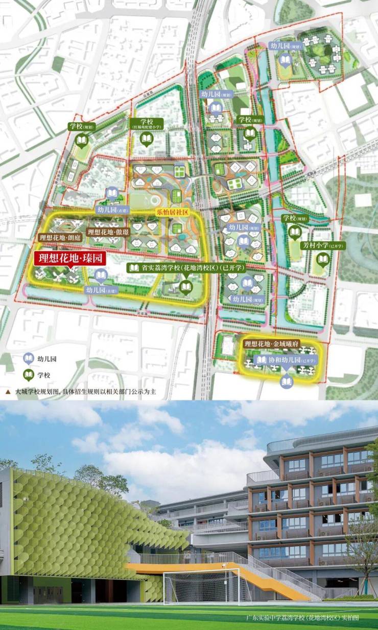 *省实介绍:规划小学36班和初中18班,共54个班,23年9月已开学;瑧园所在的社区属于25年省实荔湾学校花地湾校区招生范围*