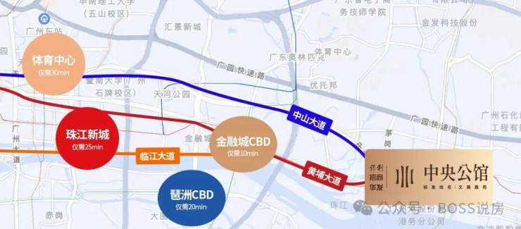 2大城市主干道(黄埔大道、中山大道)横穿珠江新城、金融城