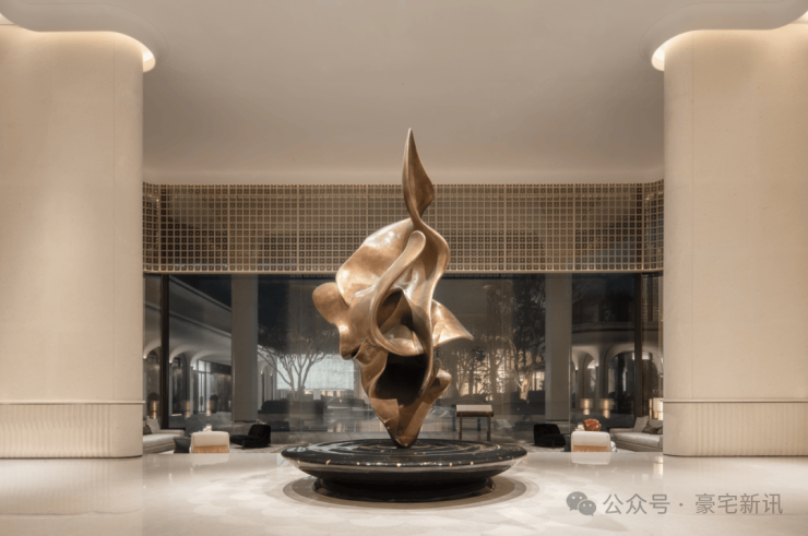 三进院“艺术会所”,是用艺术讲述“珠江传奇”的展厅。国际艺术家约翰・阿特金的《潮涌》立于大厅中央,多座艺术作品镌刻下城市的脉动。