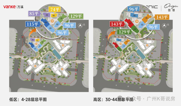 4-28层为低区,2T6,包括74-85-96-115-129㎡户型。