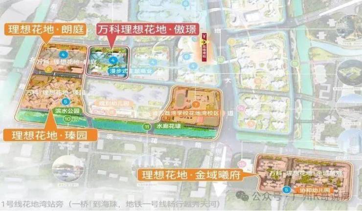 从项目步行到地铁1号线花地湾站大概3-400米,听说地下预留了通往地铁的通道,以后不怕风吹日晒雨淋,对上班族来说很舒适。(百度地图直线距离)